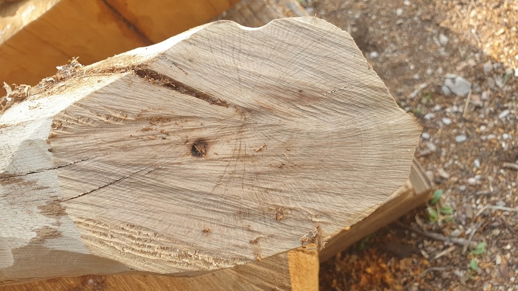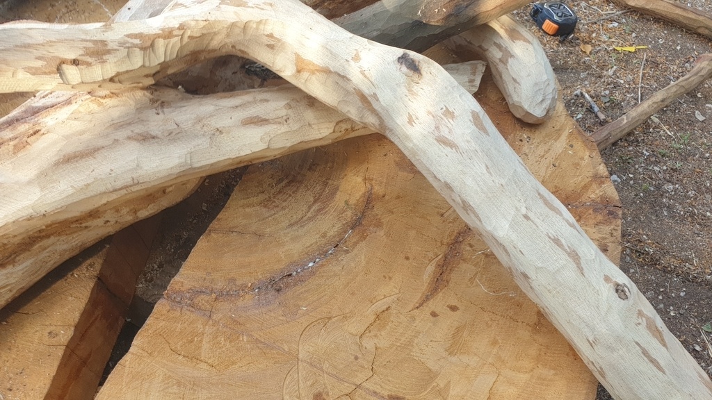 Le plateau est cette essence mystère jaune orangé, les pieds sont en chêne ( vraisemblablement du chêne vert ).