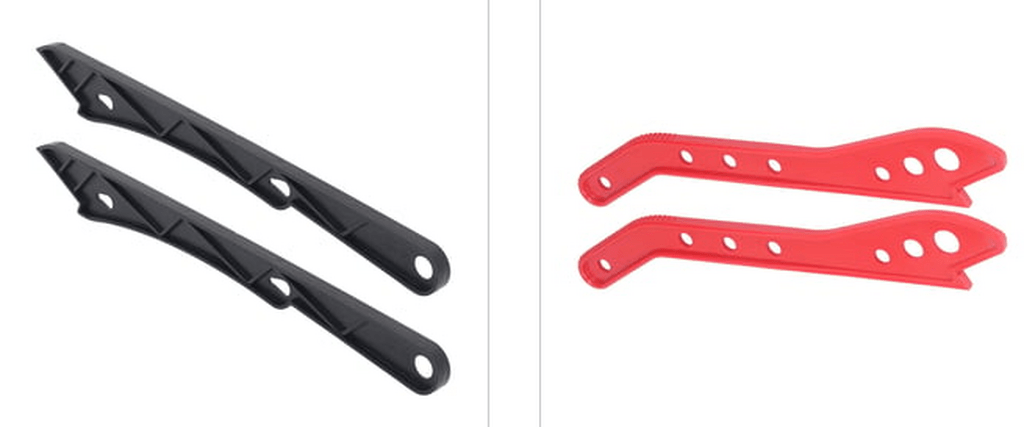 Sur la première photo, on voit des poussoirs que tu peux utiliser sur une dégauchisseuse, une défonceuse sous table ou, dans certaines conditions, sur une scie sous table. Il m’arrive aussi de m’en servir simplement quand j’en ai marre de finir avec des échardes dans les doigts. Personnellement, je ne suis pas un grand fan, mais je les utilise de temps en temps.