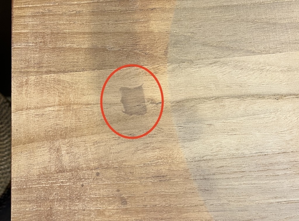 J'ai un plan vasque qui a servi 15 ans dans une salle de bains. Je l'ai poncé, mais quelques taches sont encore visibles.