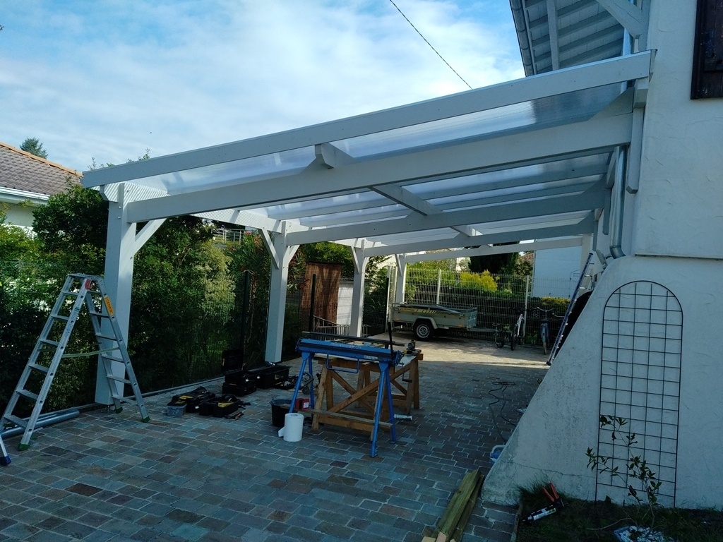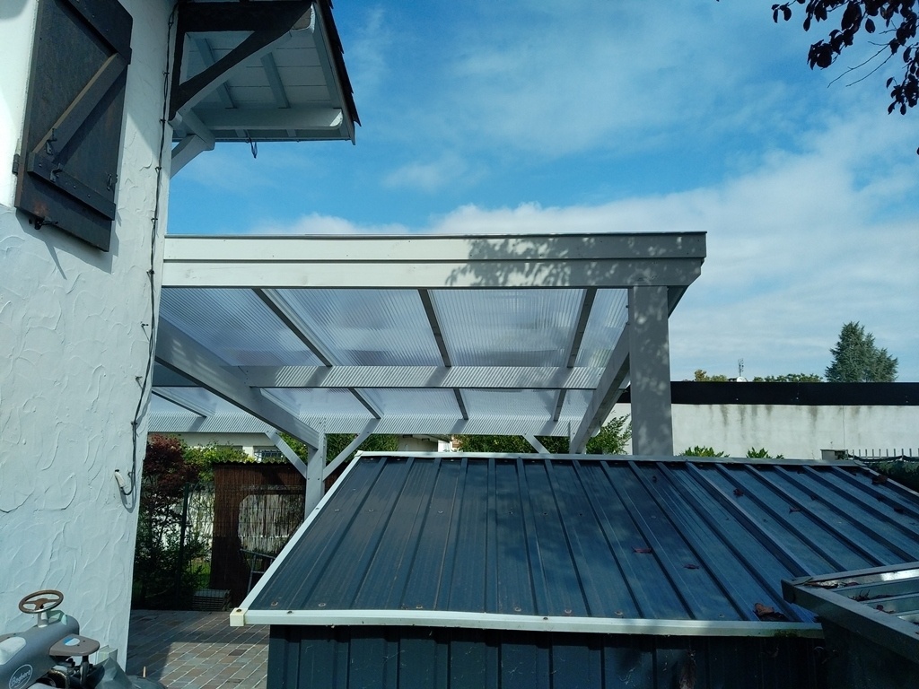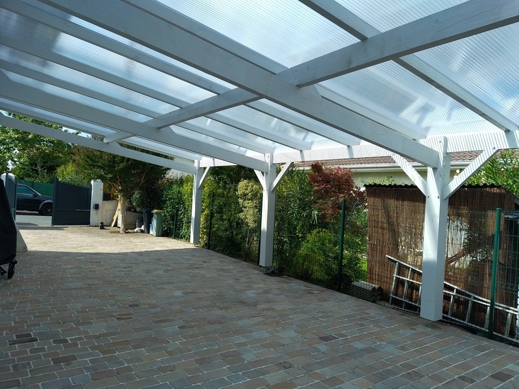 La toiture sera en polycarbonate 10 mm, donc très légère, avec une pente de 5 %.