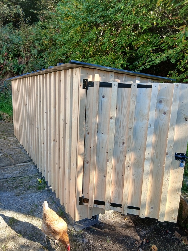L'abri dispose d'un bardage à couvre-joints sur les façades sud et ouest, et d'un bardage à claire-voie au nord et à l'est, bien abrité par des arbres. Cette configuration favorise une bonne aération tout en offrant une protection efficace contre les UV et les intempéries.