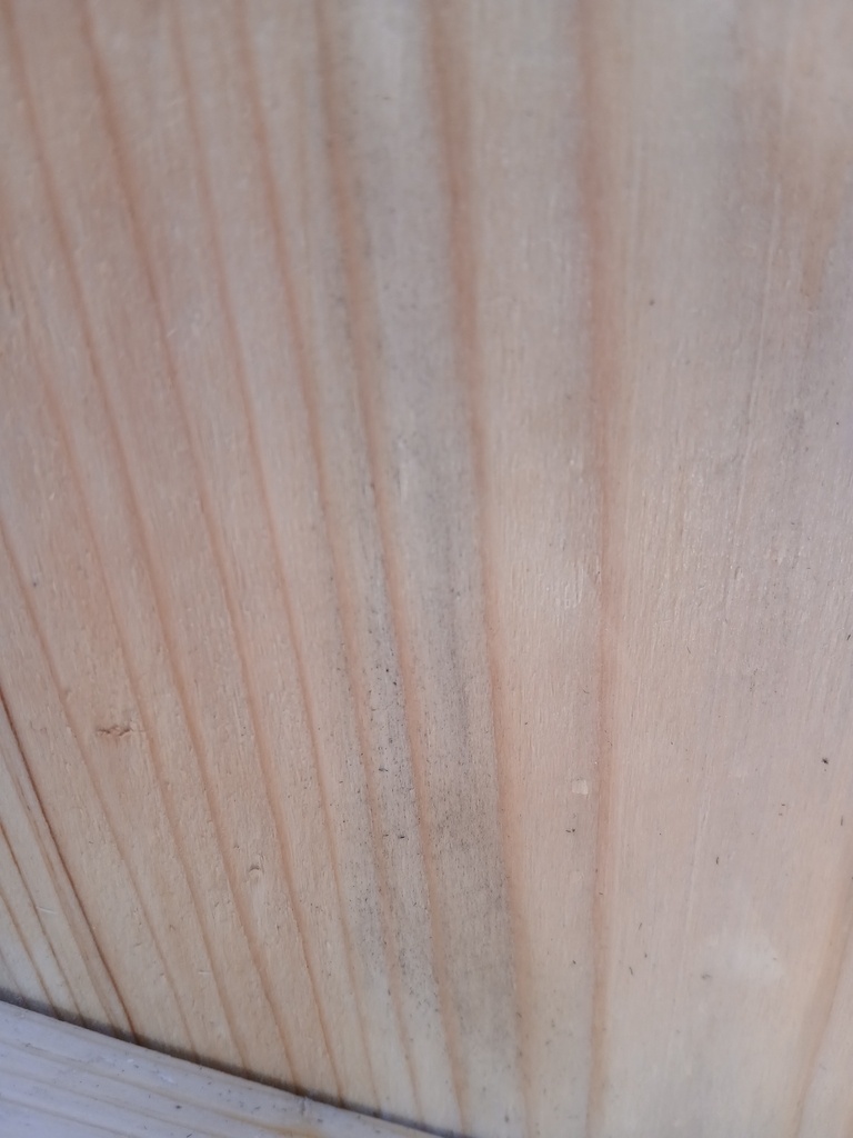 Je m'absente plusieurs semaines et vais laisser l'abri en l'état, en comptant sur l'aération et les UV pour réduire l'humidité du bois. J'ai prévu d'appliquer une lasure par la suite, une fois le bois suffisamment sec et débarrassé de son humidité résiduelle et de sa sève.
