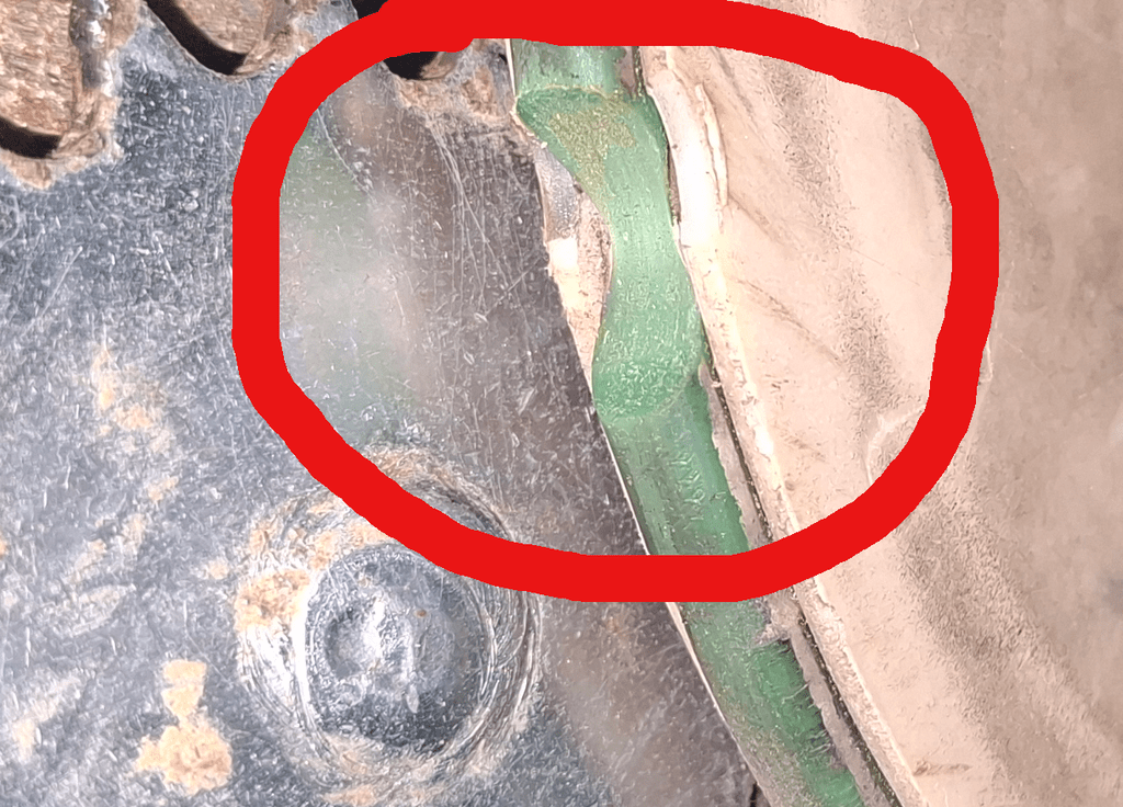Et entre autres petits problèmes, le volant d'entrainement des rouleaux de la partie raboteuse dont le 'caoutchouc' est creusé (encadré eu rouge sur l'image jointe).