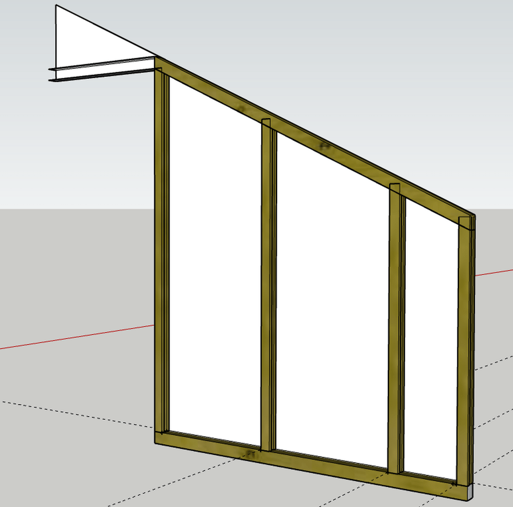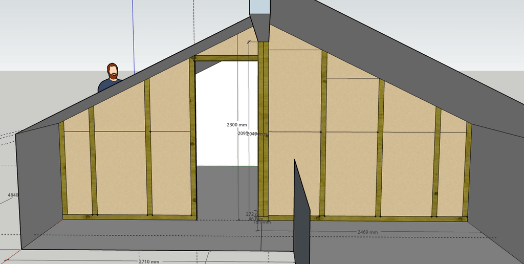 Sur le dessin, j'ai réalisé une cloison en lambourde de 60 x 60 mm pour le sol, le mur et le plafond. J'ai utilisé des lambourdes de 40 x 20 mm pour les séparations afin de créer un passage de 20 mm pour passer une gaine technique pour l’électricité. Sur les lambourdes de 40 x 20 mm j'ai ajouter des cales en bois de 20 mm d'épaisseur pour les rigidifiés.