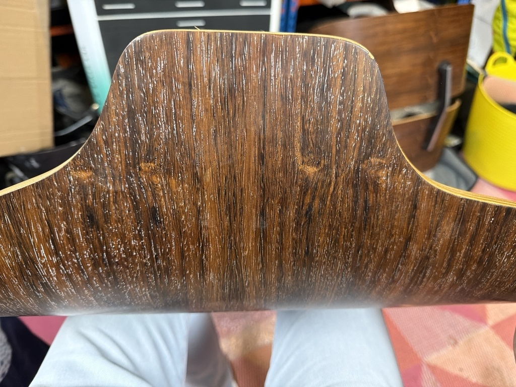 Bonjour, je possède une lounge chair Eames qui date de 1975. Il n’ y a jamais eu d’entretien du placage bois qui doit être soit du palissandre de Rio ou de l’acajou!