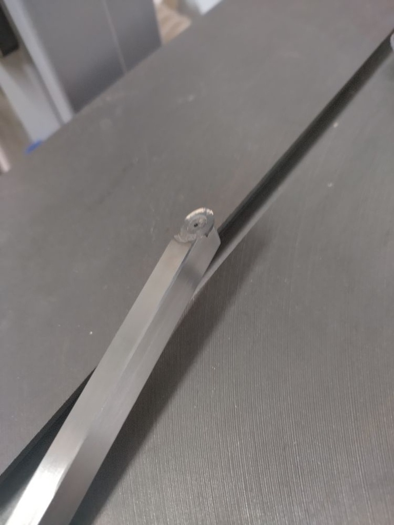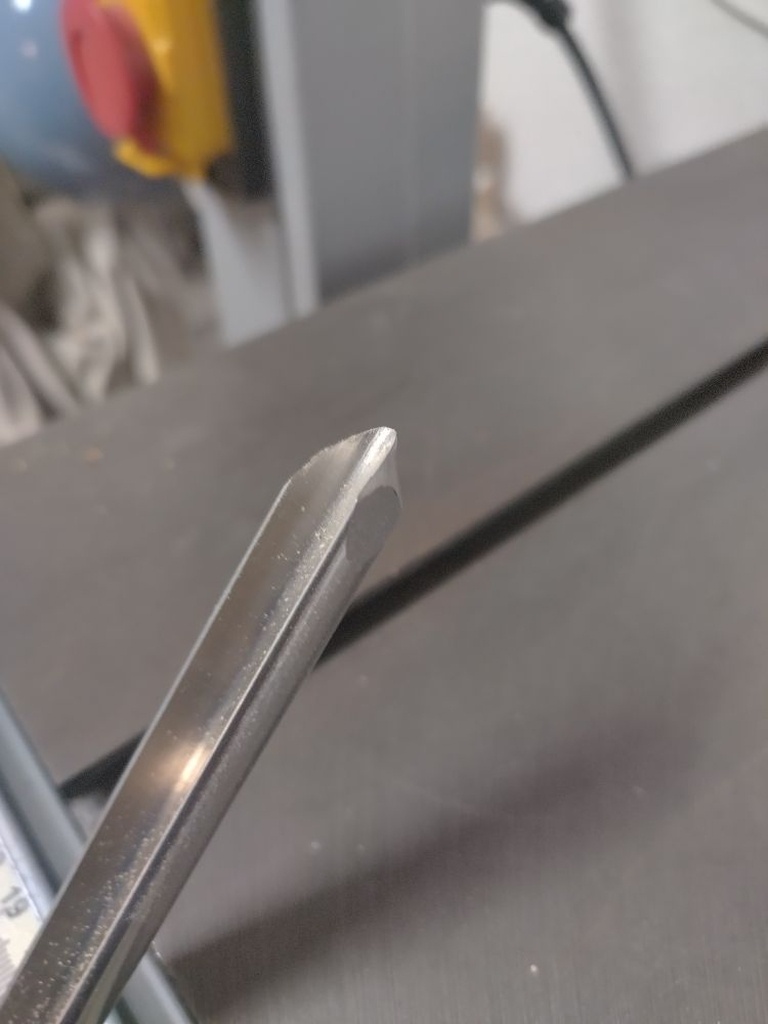 Voilà les 3 gouges que j'ai en stock pour le boulot. Sur la première photo, les gouges qui plantent, sur la 2e photo (potentiellement la gouge que j'aurais du utiliser) l'aiguisage est plus "long", il a été fait comme ça pour éviter les risques de plantage justement et la dernière c'est celle qui m'a permis de terminer mon mini bol proprement, gouge à plaquette, je dois dire que ça fonctionne plutôt bien, d'autant que la plaquette est neuve.