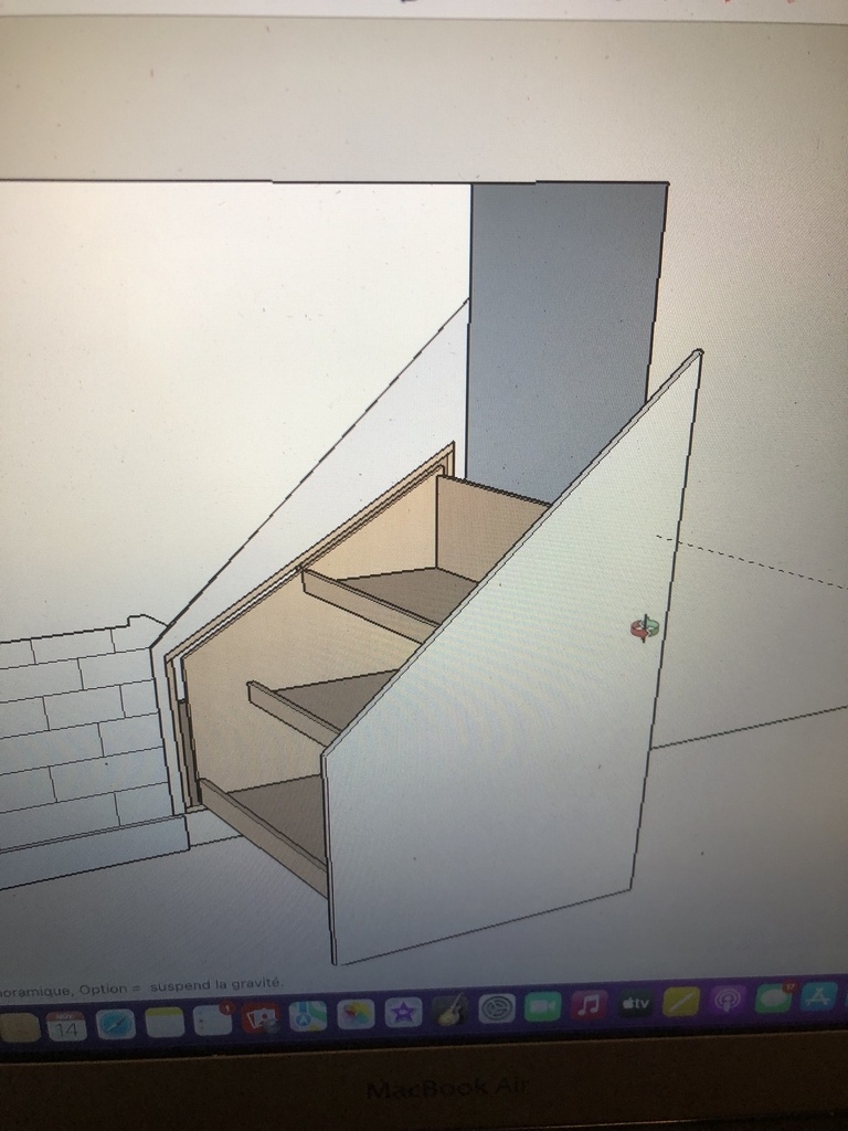 donc je suis obligé d installer le tiroir avec les coulisse avant de tout mettre en place car à cause du mur je n aurais plus accès au côté droit de mon tiroir pour fixer le tiroir à la coulisse