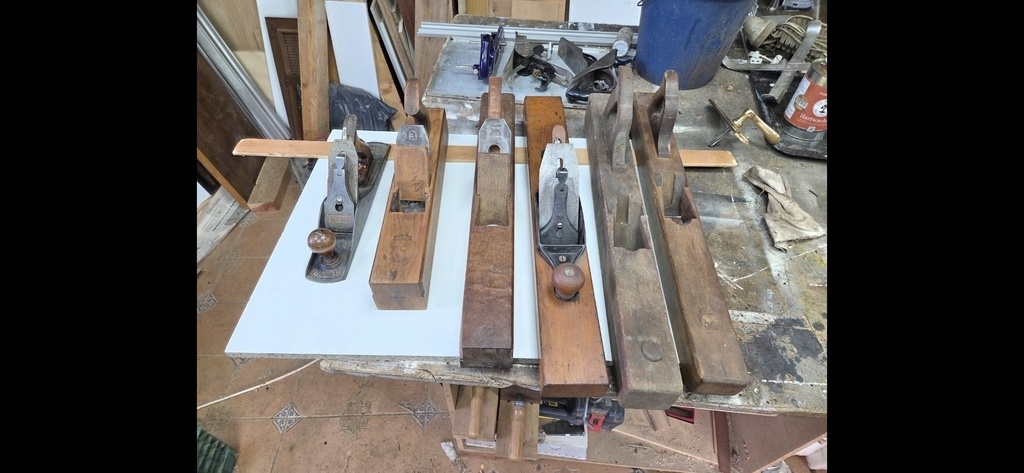 De gauche à droite un record, un anglais, un espagnol en chene vert, un stanley bois et métal , deux en hêtre.