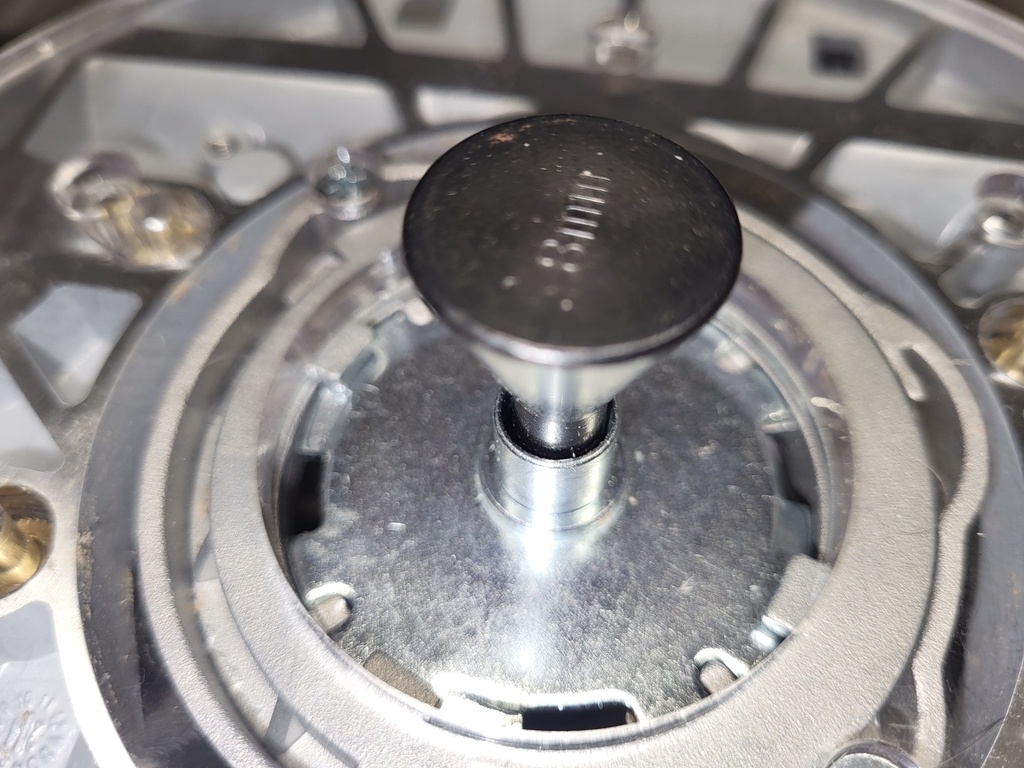 Dans tes photos, j'ai l'impression que tu te sers mal du cône de centrage. Il faut désserer la plaque en plexiglass. Decenscendre au maximum le centreur qui va venir te centrer la bague. Et ensuite resserrer les vis de la plaque. Qui eux sont des vis à têtes plate. Qui sont dans un trou qui laisse de la marge pour bouger. Je ne sais pas si j'ai été clair.