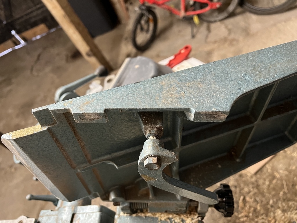 Alors dans l’intervalle je viens de voir qu’il y avait des rondelles (certainement pas d’origine) sous la table de sortie intercalé avec le châssis