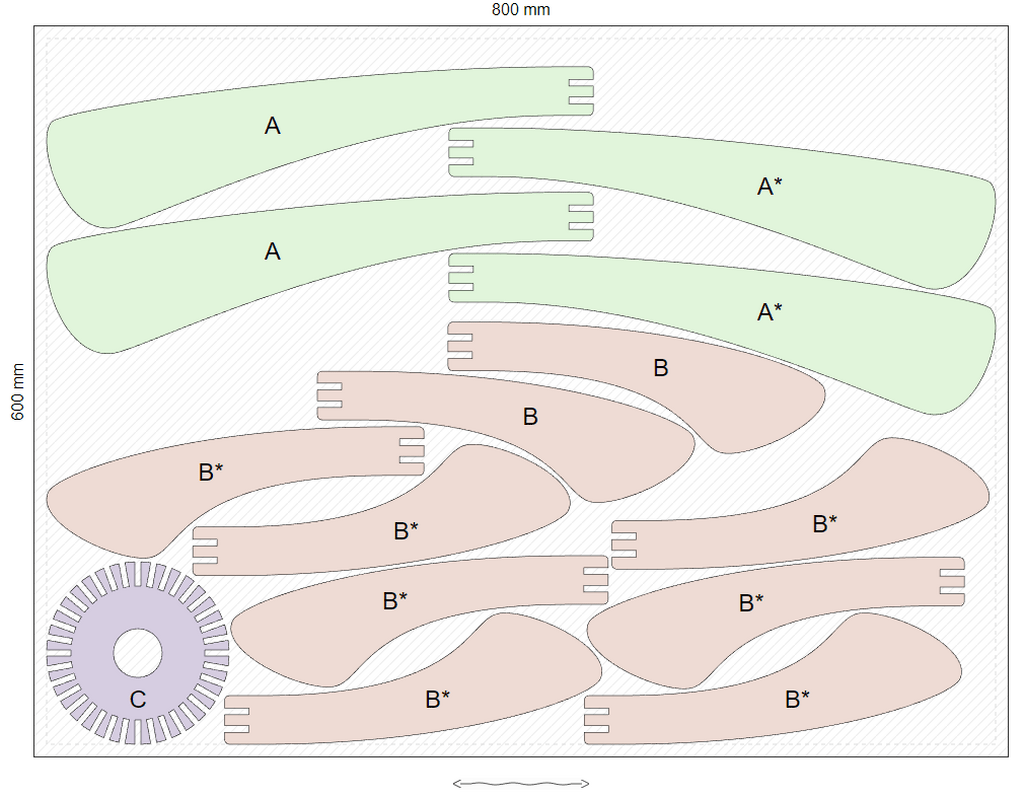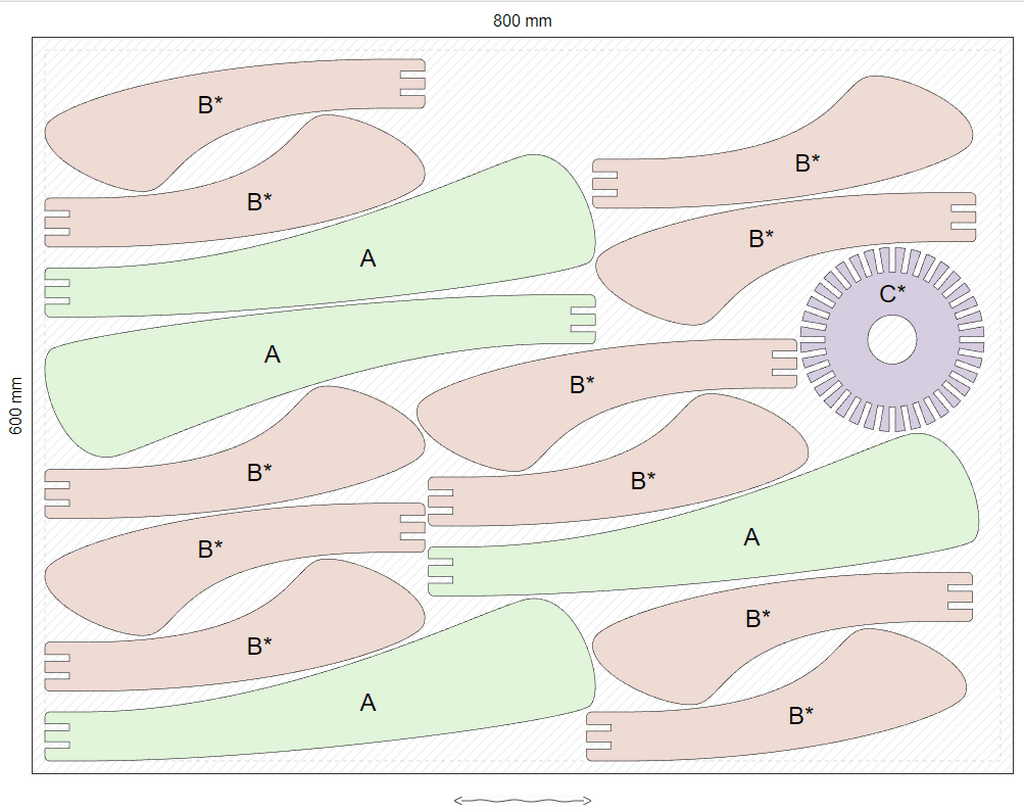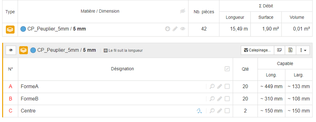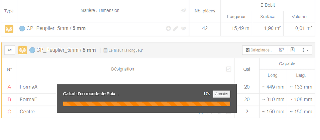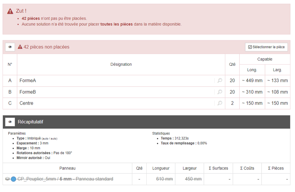 J'ai 42 pièces au total, 1 seule matière sur 1 seul type/format de panneau.