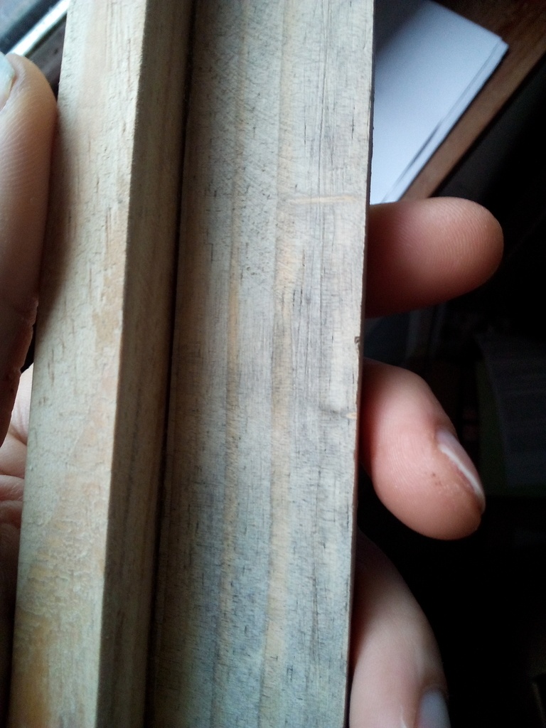 Sur tes photos je pense à du pin bleui( c'est un champignon) mais sans certitude car l'échantillon est minime.