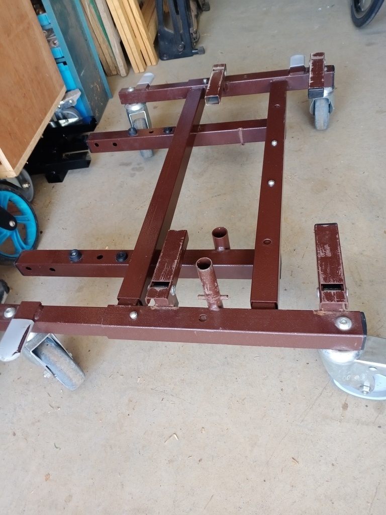 Vu le poids de la machine (plus de 300kg si j'en crois les infos que j'ai trouvées sur le net), j'aurais voulu le monter sur un chariot pour faciliter son déplacement lors du transport.