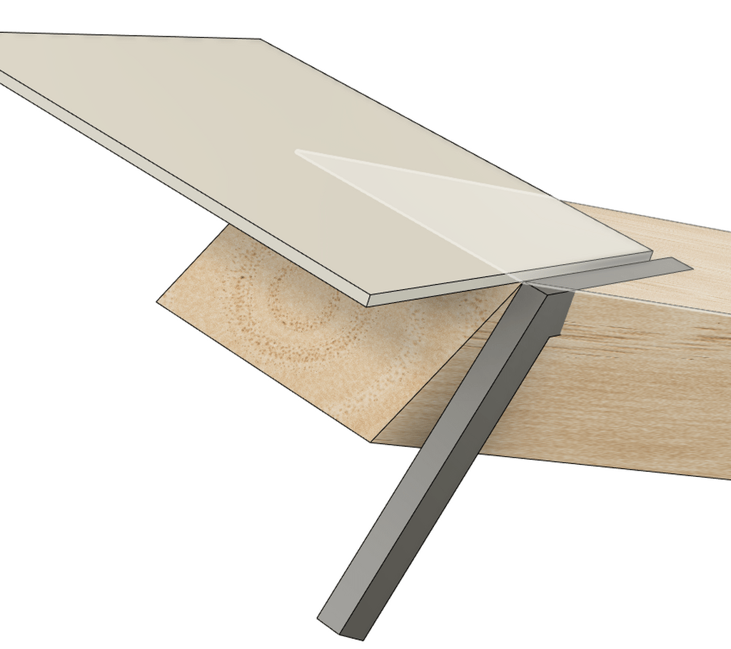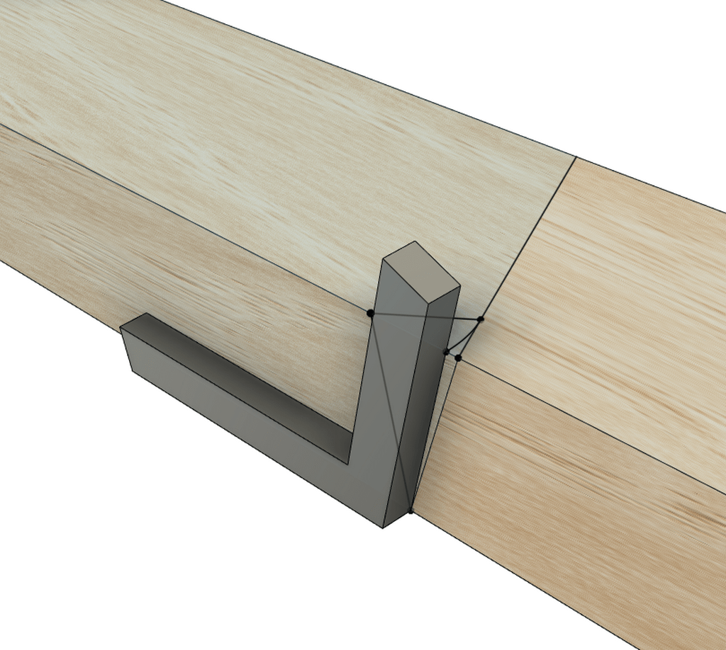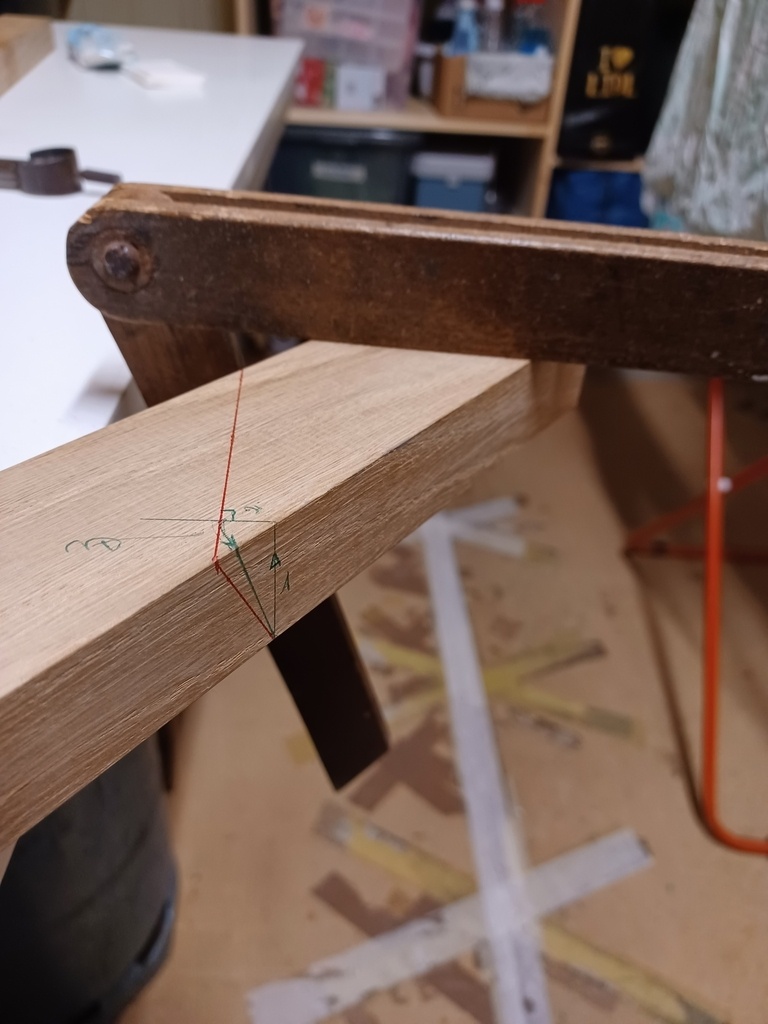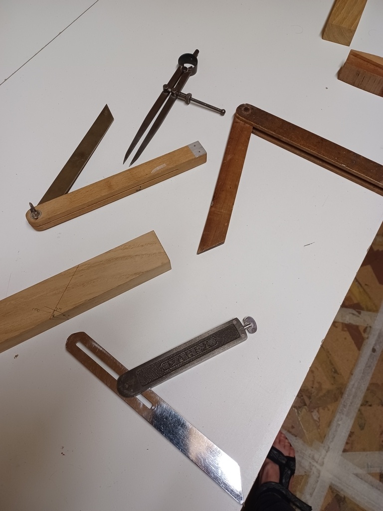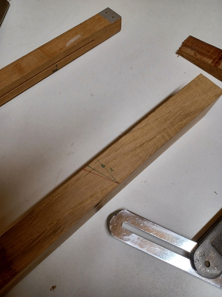 Cette courte vidéo va peut-être t'éclairer. Quand la pièce présente deux pentes différentes de 90 degrés il faut trouver l'angle de réglage de la machine, l'arc au compas sert à rabattre sur le chant de la pièce l'angle recherché