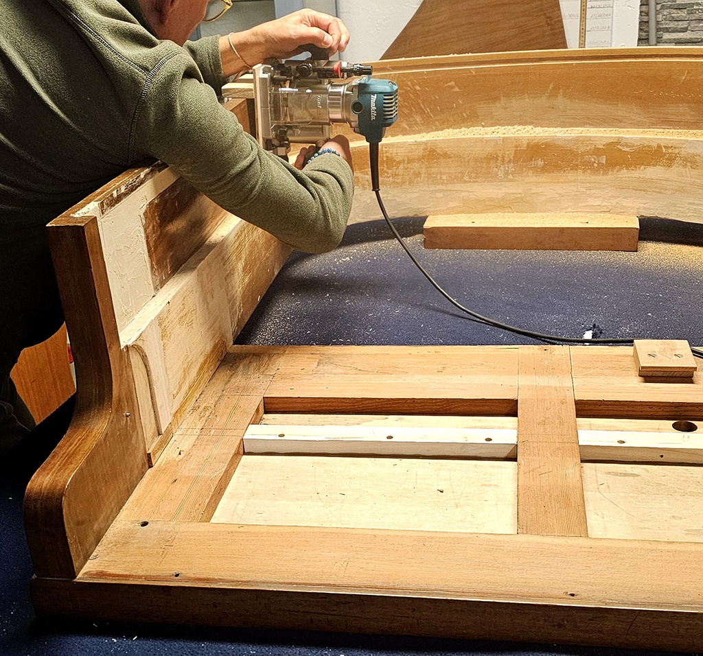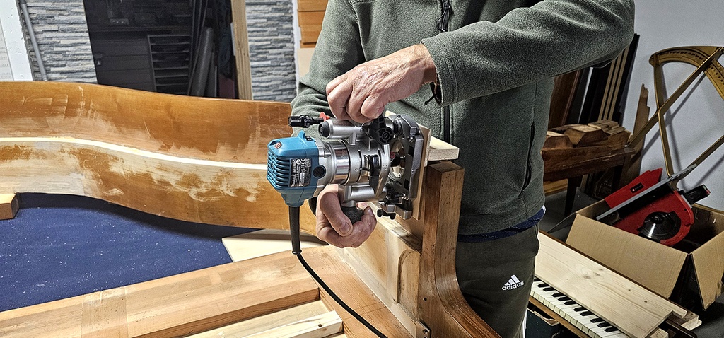 et je ne sais comment mi prendre pour que le rainurage soit de la même profondeur dans les arrondis, ma défonceuse "Makita électrique" son sabot ne reste pas plaquer dans les courbes.