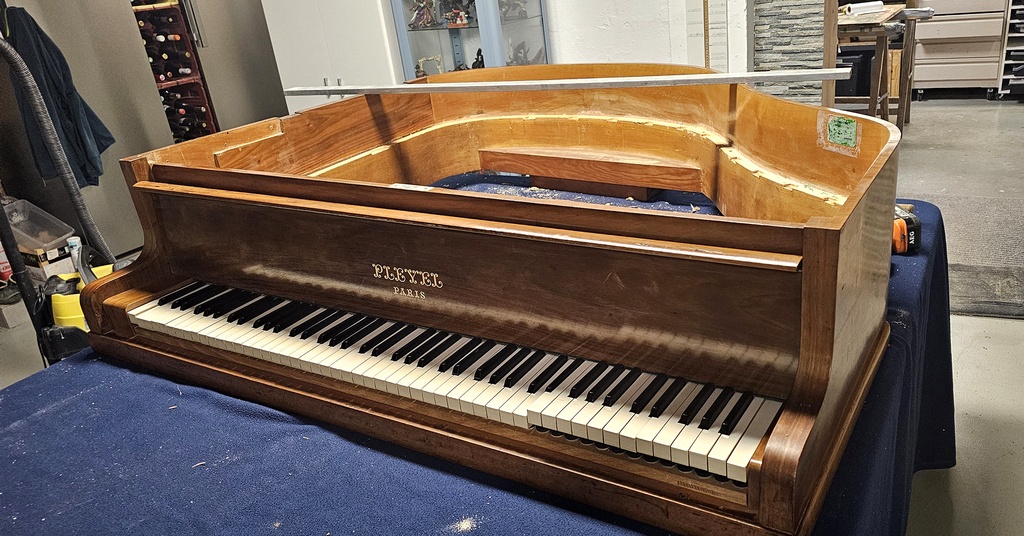 Actuellement, je transforme le piano quart de queue Pleyel de ma mère en Bar.