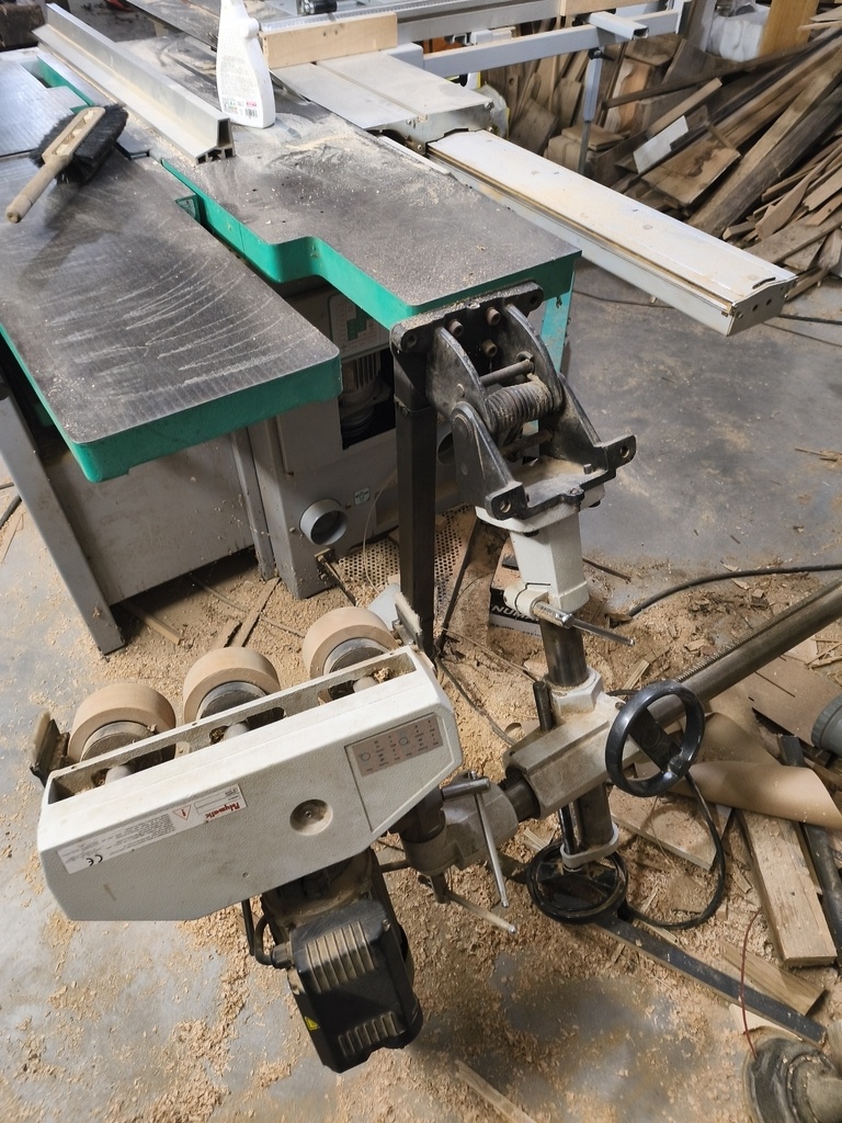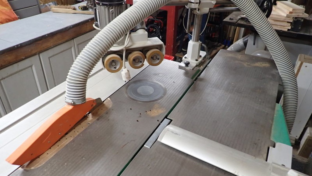 Elle permet de basculer l'entraineur afin de libérer toute la table de la scie.