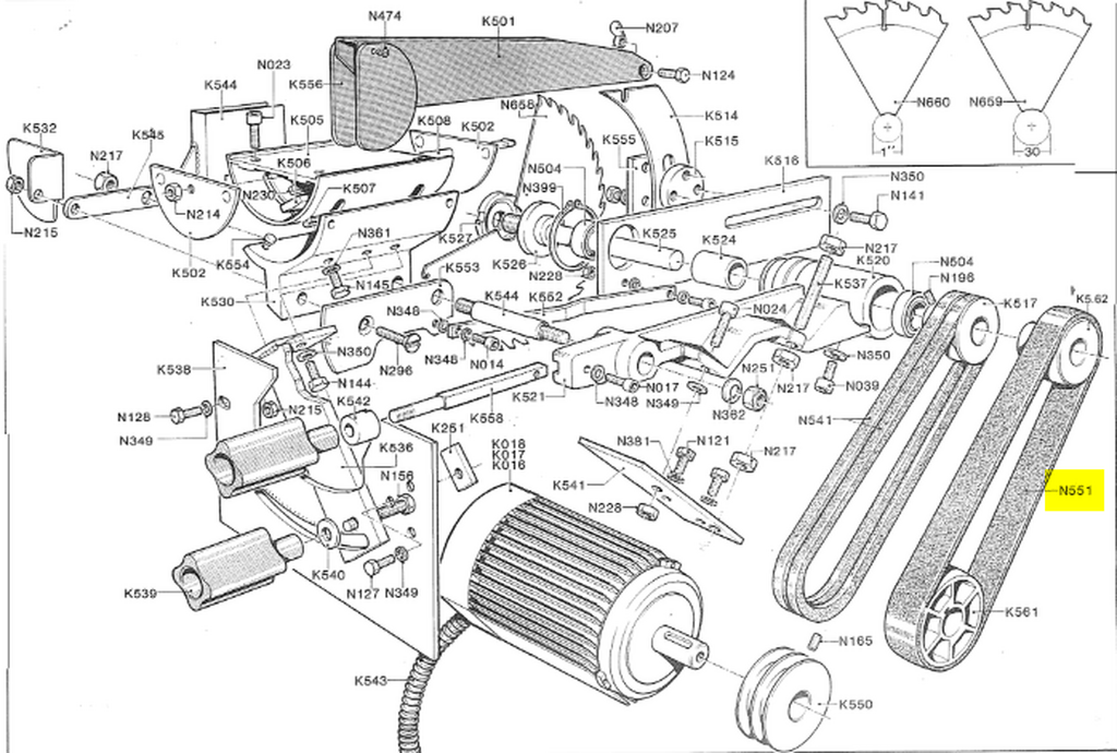 Pour le bloc de scie, ma courroie correspond à la référence N551 (celle de droite) :