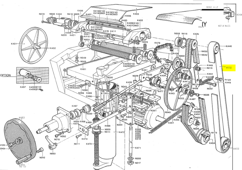 Pour compliquer un peu les choses j'ai vu qu'il existait 2 versions de la K26: une version avec double courroies trapézoïdales, et une avec une seule courroie plate