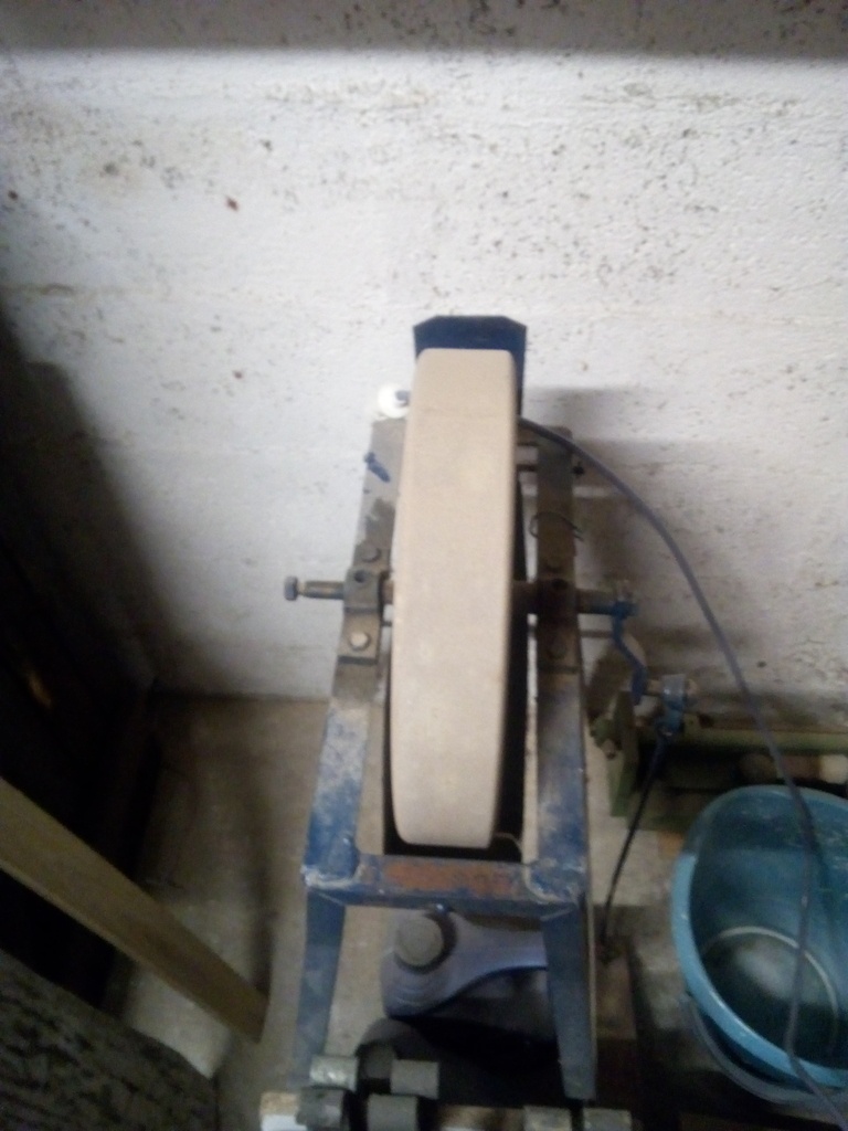 N'ayant pas / plus la main pour affûter à l’œil sur ma meule à eau, ancien modèle en grès que je tiens à continuer à utiliser (objet familial depuis 3 générations).