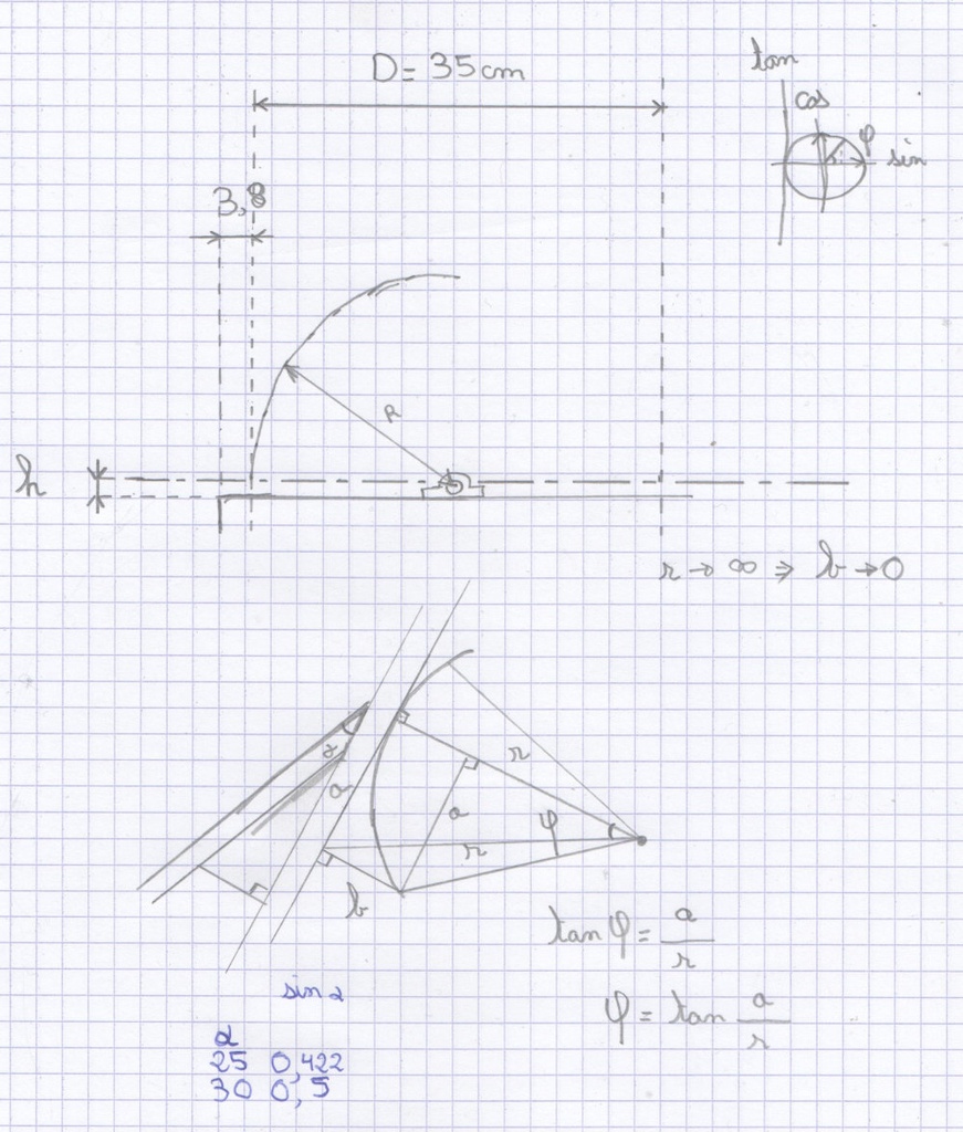 Là où mes notions de trigo et géométrie coincent, c'est pour calculer la correction à apporter due à la rotondité (rondosité ?) de la meule. J'attaque peut être pas le problème avec le bon cheminement.
