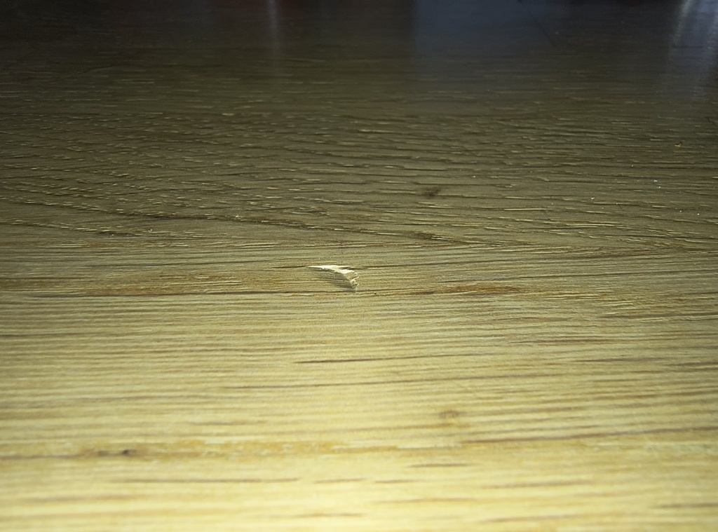La cire à reboucher, à plus forte raison dans le cas d'un plan de travail, est aussi à déconseiller. Ça ne reste qu'une cire molle, qui adhère dans de très petits creux ou fentes sur du bois brut. Mais pas dans un enfoncement comme celui-ci, qui de plus est vernis. Dès que tu vas y poser quelque chose, ça va s'enfoncer, ou s'enlever.