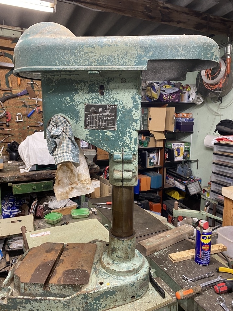 Je viens de commencer un nouveau chantier de rénovation à savoir ma perceuse colonne d’établi ADAM C18E.