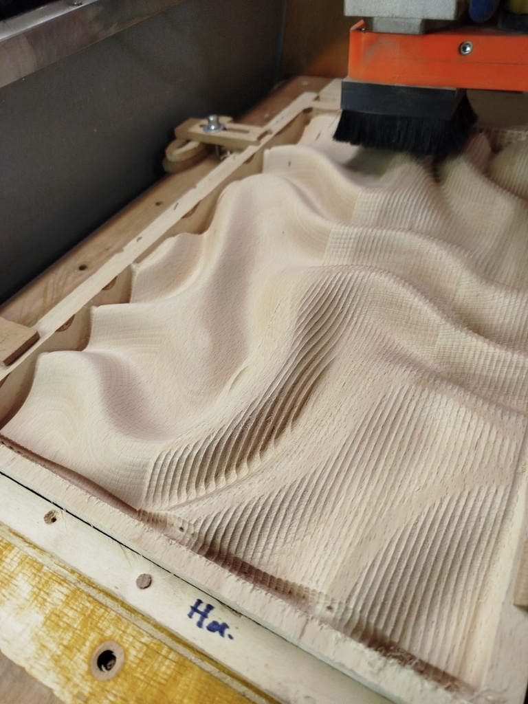 En revanche, je suis intéressé à savoir quelle fraise tu as utilisé avec quel pas pour la dernière passe de finition en X (ou Y) et en Z. Sinon, comment as-tu fait le ponçage final ?