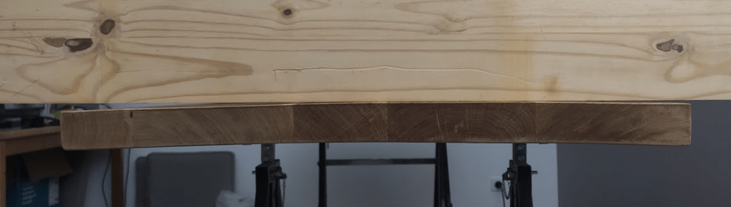 Bon, ce n'est que 3-4 mm, donc pas sûr que cela compense tout, mais est-ce une bonne idée, ou dois-je accepté cette courbure ? Est-ce que cela ne risque pas d'endommager le vernis si le plateau travaille dans l'autre sens après l'ajour vernis ?