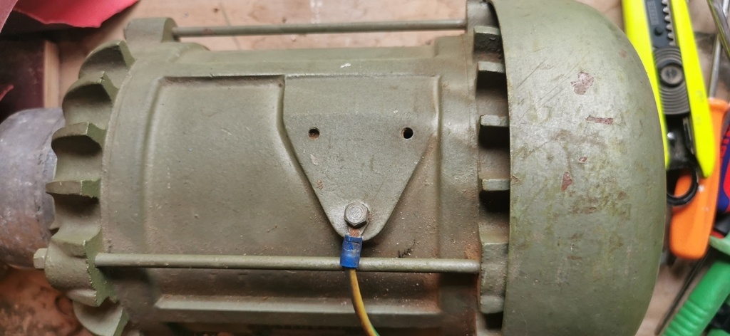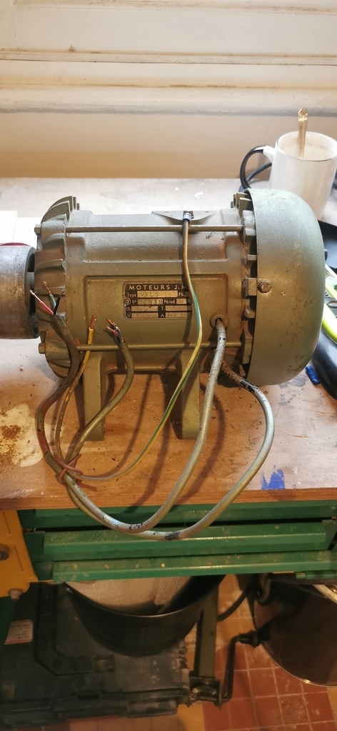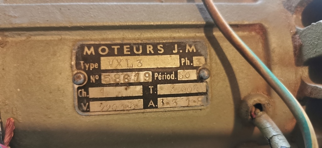 Voici le moteur qui était monté, j'imagine d'origine, aux vues des fixation sur le bâti de la machine.