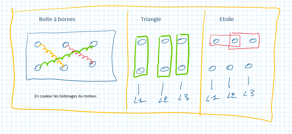 Est ce que c'est parce qu'il était prévu pour fonctionner dans les 2 sens quand monté avec l'option scie sur table ?est ce qu'il ne manque pas le bornier pour faire le branchement des barrettes en triangle ??