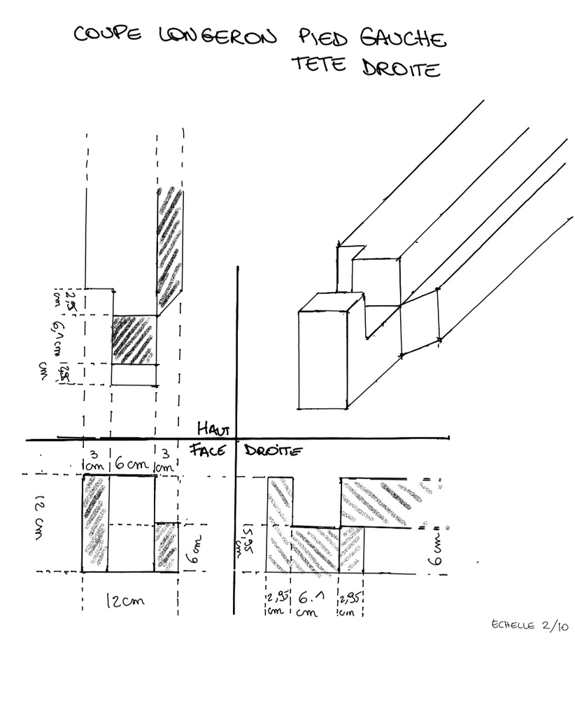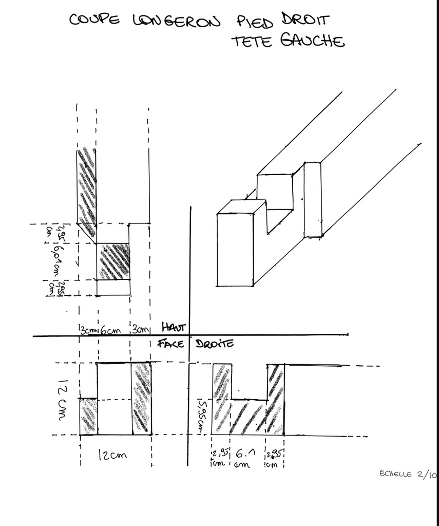 Pour répondre à ta question je ne suis pas certain que l'assemblage choisi soit le bon. Les poutres en chêne sont des bois d'œuvre et non de menuiserie, elles présentent beaucoup de fentes et cet assemblage fragilisé beaucoup l'extrémité. Bref pas certain que ça tiendra.