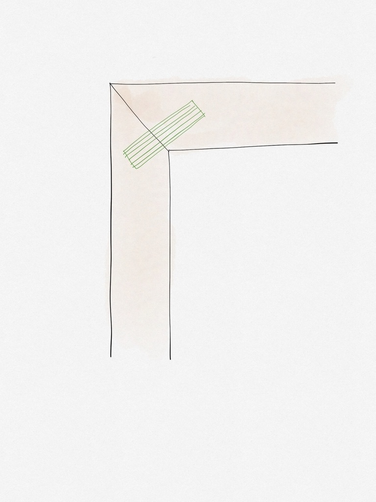 je fais mes coupes d' onglet , je met mes pièces a plat je colle un ruban adhésif pour mettre bort a bord l angle aigu les deux panneaux