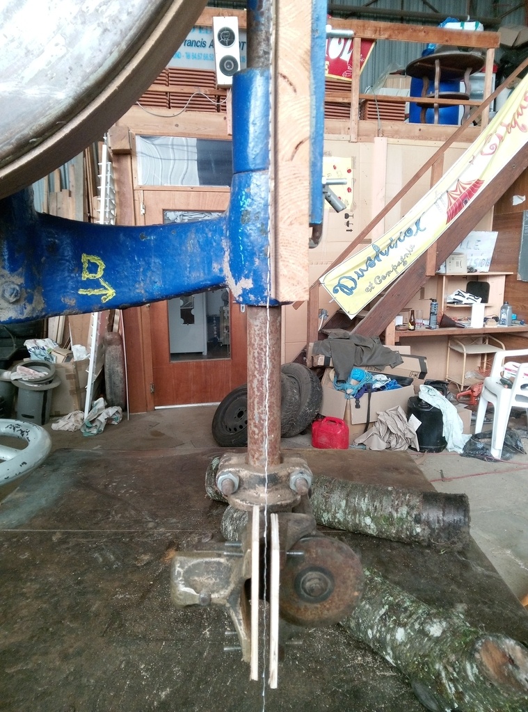 Très proches, dans le principe, de nos scie a ruban d'atelier, il faut, cependant, rajouter sur ces dernières un système de maintien des bûches, pour éviter quelles tournent.