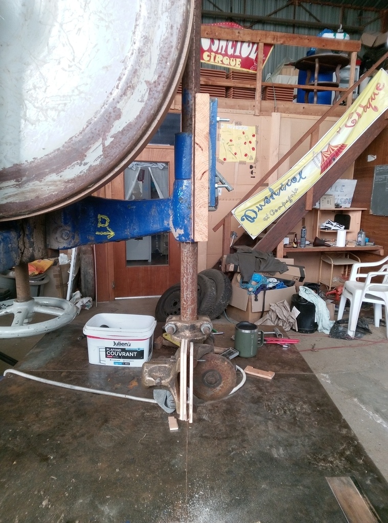 YoB Ce qui sert au réglage d'inclinaison du volant haut, c'est le petit volant en alu, à la verticale, en bas du montant support.