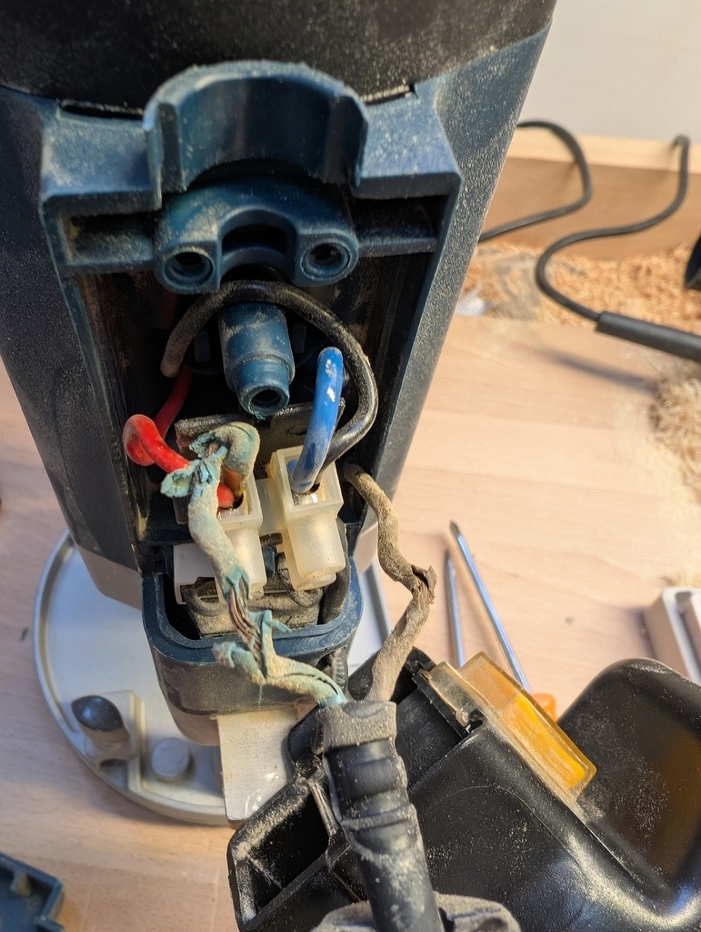 Et la, grosse surprise, la gaine plastique des 2 fils d'alimentation se délite complètement.