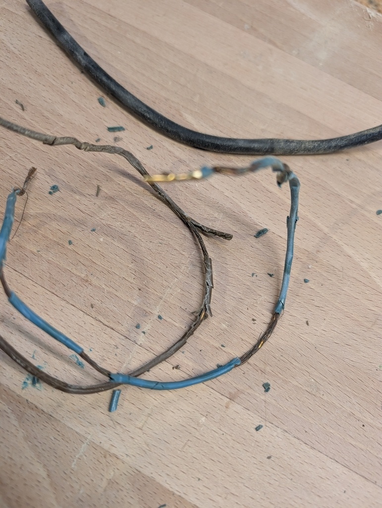 Je décide donc de changer le câble complètement et en ouvrant la poignée pour faire le branchement, je m’aperçois que les fils à l’intérieur sont aussi en train de partir en poussière. Je ne sais au bout de combien de temps j'aurai eu un court circuit, mais c'est sur que ça allait arriver tôt ou tard...