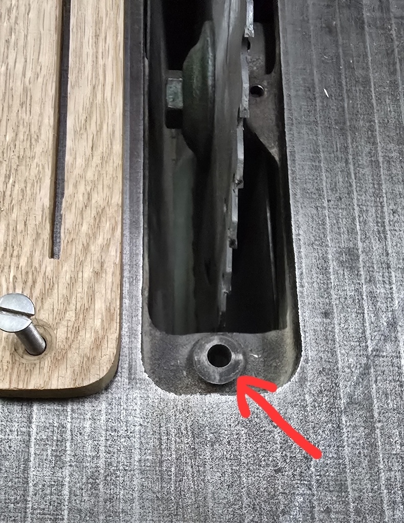 Sur ma Lurem il n'y a pas de vis de fixation seulement pas de jeu pour le cache et qu'il ne dépasse pas. Sur mon ancienne il y avait ces deux vis tête fraisée et l'écrou par dessous la table était difficile à mettre, ce petit bossage (flèche) ne maintient pas bien le cache peut-être.