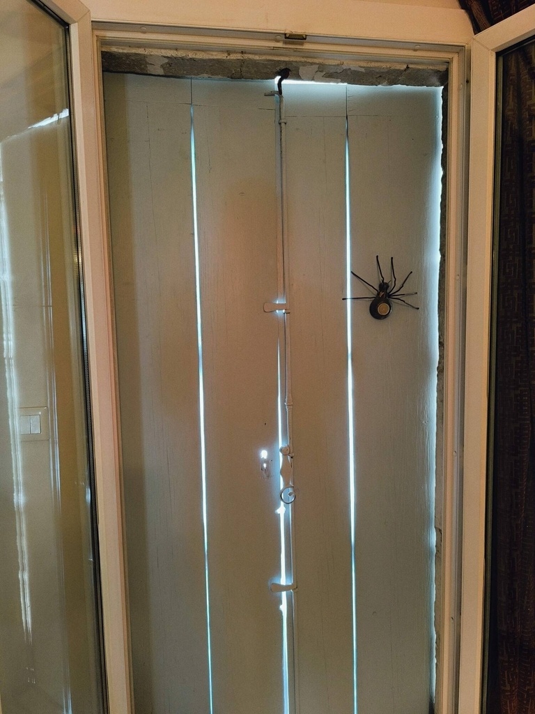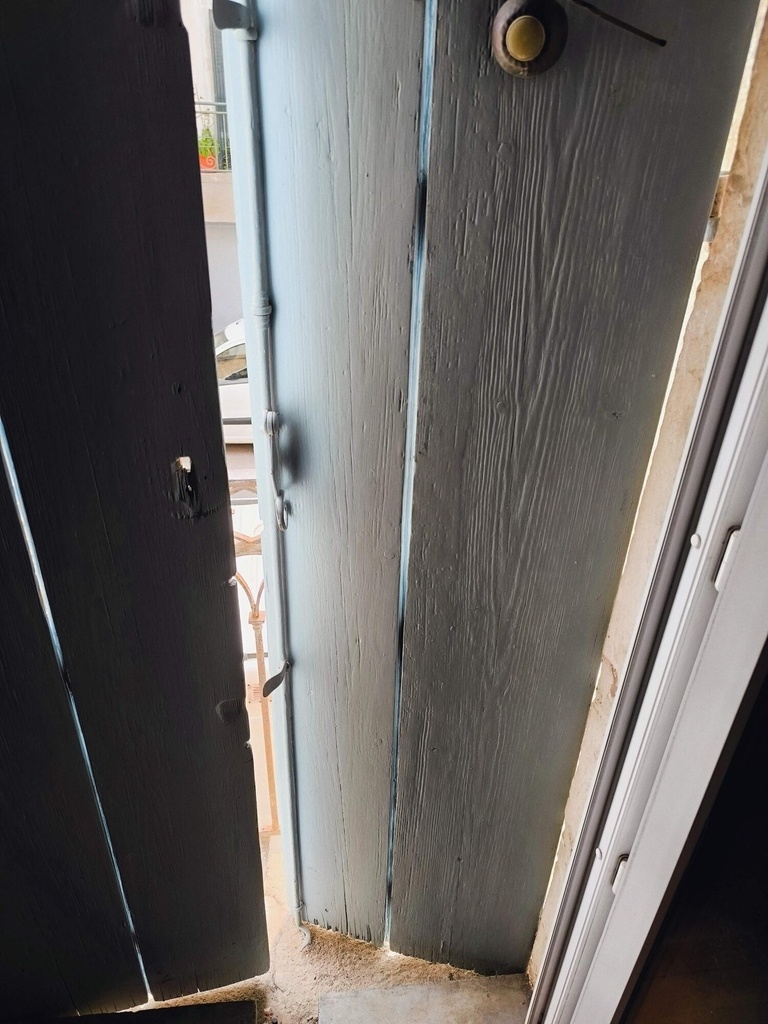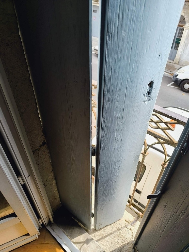 Concernant les 3 fixations par penture par demi-vantail, j'ai lu des partisans des vis TRCC, d'autres des vis pentures. Étant au 2ème étage, la question de l'effraction n'est raisonnablement pas préoccupante. Souvent les débats se portent pour la fixation d'écharpe sur de lames bouvetées libres, au profit des vis TRCC, ce qui n'est pas mon cas ici.