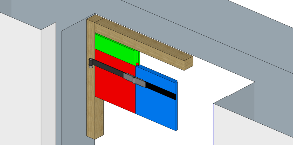 A la différence près que les gonds seront fixés sur cadre bois, lui même fixé en tableau. (ce qui aboutira au même résultat que la construction d'en face)