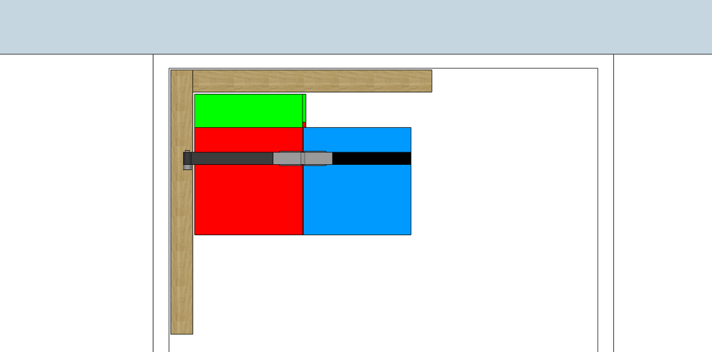 Mon cadre est un carrelet chêne 63*75. Pour permettre le repli en tableau et garder un peu de jeu, j'ai obtenu une implantation théorique de l'axe du filetage bois à 15 mm du bord du carrelet (si je fixe parallèlement au tableau).