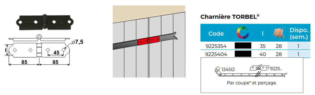 je vais partir sur des torbel 35x5 Ø14 ou 40x5 Ø14 pour être compatible avec leur charnières :