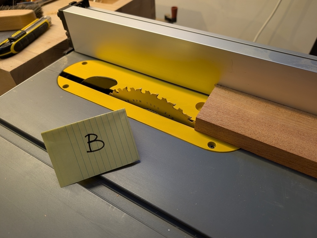 Bonjour, dans la majorité des cas : la chute de l'autre côté du guide parallèle. Si vous cherchez à scier la baguette de 10 vous faites A (avec le poussoir qui va bien, les petites baguettes ont la facheuse tendance à rapidement se faire rejeter), si vous voulez la plus large, vous faites B.