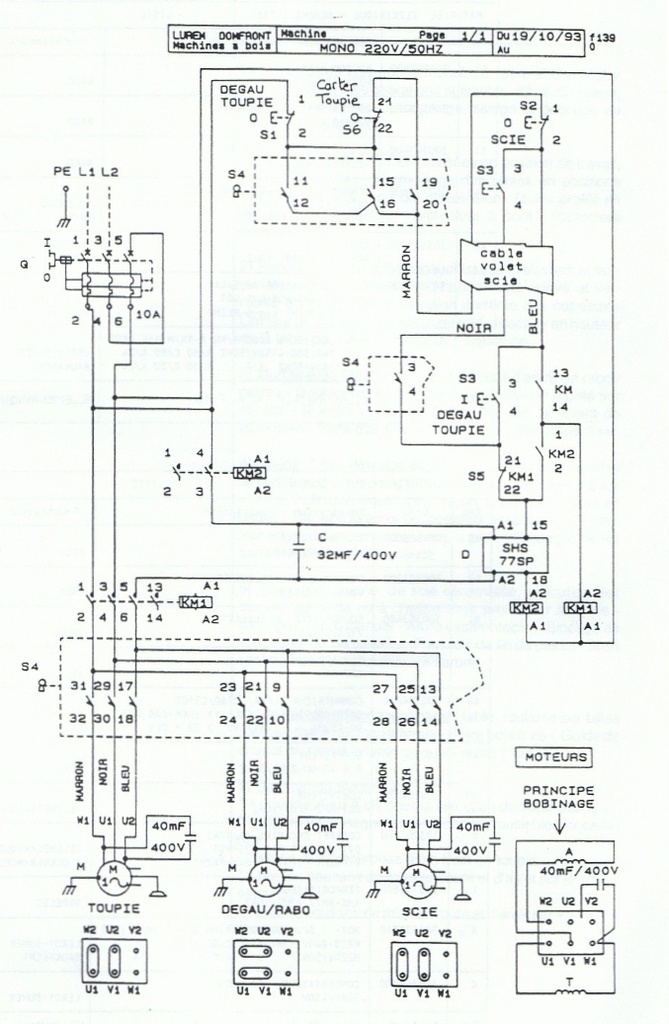 Je n'ai pas le manuel d'origine de la machine et je ne dispose donc pas de son schéma électrique.
