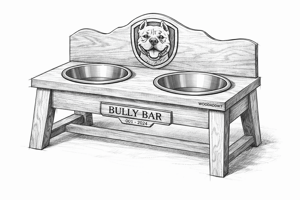 Pour en revenir au bois, je souhaite lui fabriquer une station repas car les gamelles au sol se balade vite dans toute la pièce de vie vue la finesse du toutou.