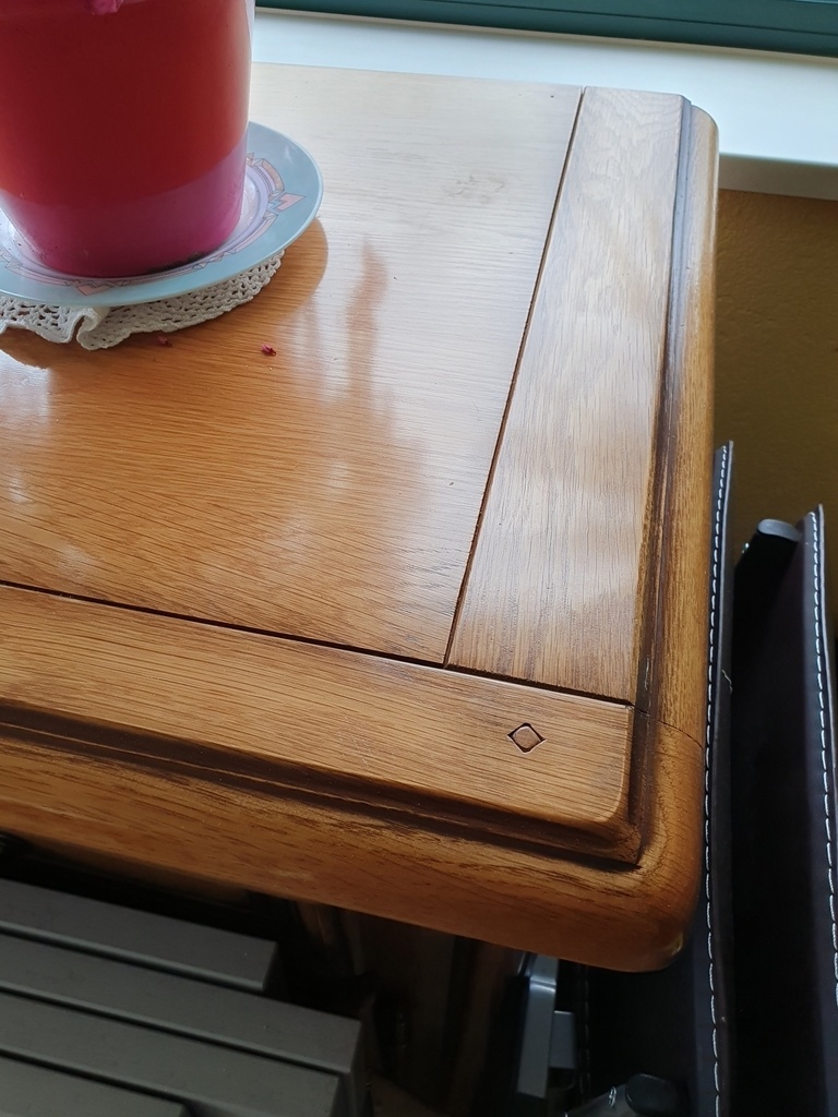Il s'agit très probablement d'un dessus de meuble industriel, dont il aurait été intéressant de voir un peu plus en détail le panneau du dessus (quelques vues plus larges sous différents angles. Vues de l'arrière et du dessous), pour confirmer ou infirmer l'hypothèse qu'il soit en réalité fait d'aggloméré replaqué chêne...