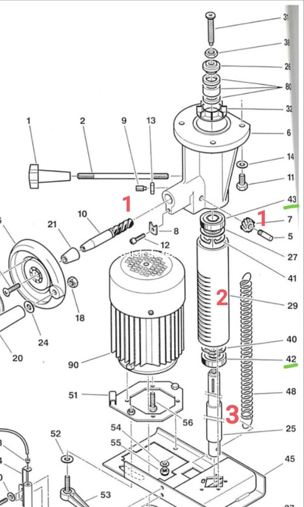 Voici une vue plus claire d'une autre combiné Lurem l'ordre de démontage devrait être similaire.On retrouve les roulements 42 et 43.