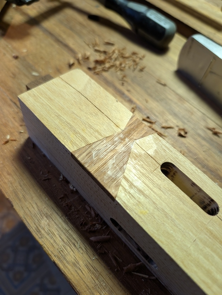 Je fais un meuble de salle de bain en robinier, j'ai un de mes piliers qui est légèrement fendu. Je n'ai pas assez de bois pour en refaire, et ça ne m'a pas l'air dramatique, je me dis donc que je vais stabiliser avec des papillons et que ça ira bien. Le souci, c'est que je vais avoir une rainure à peu près à l'endroit de la fissure, pour mettre un panneau. Est-ce que du coup ça vous semble choquant si je fais un papillon de 2cm de haut (le pilier vers 5cm sur 5cm, la rainure fera 1cm de profondeur) ?