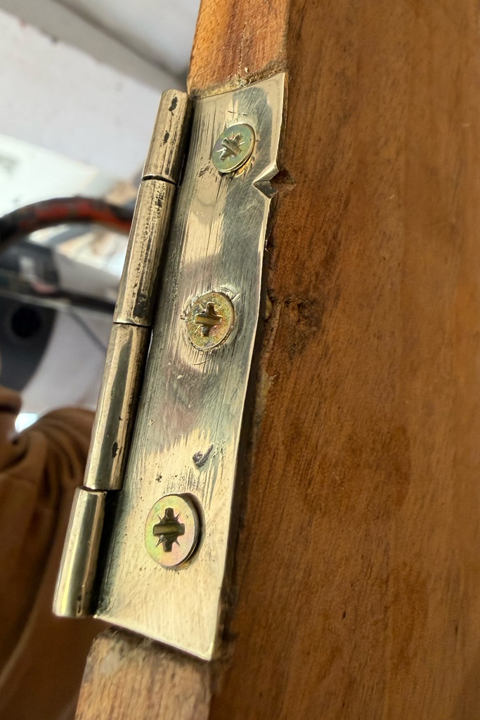 Lors de la restauration d’un camphrier, j’ai démonté les charnières encastrées. En les nettoyant, je me suis rendu compte qu’elles comportaient de petites fentes.