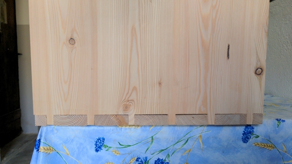 J'ai tenté d'usiner des queues d'aronde dans une planche de mélèze qui a gauchi. Du coup on voit des jours sur la face ext.